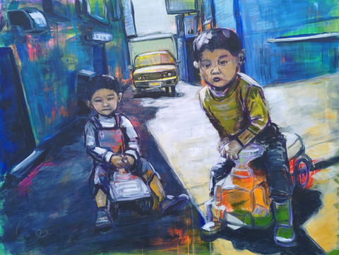 Ofte er hovedmotivet i mine værker ældre, unge eller børn. Måske er det fordi, at netop de har tiden, lysten og viljen til at stoppe op og "tage øjeblikket". Jeg arbejder med nærmest skitserende strøg, som på sin vis portrætterer øjeblikkets flygtighed. Og som en boble springer, forsvinder øjeblikket. Men det er også dét, som gør det så dyrebart.